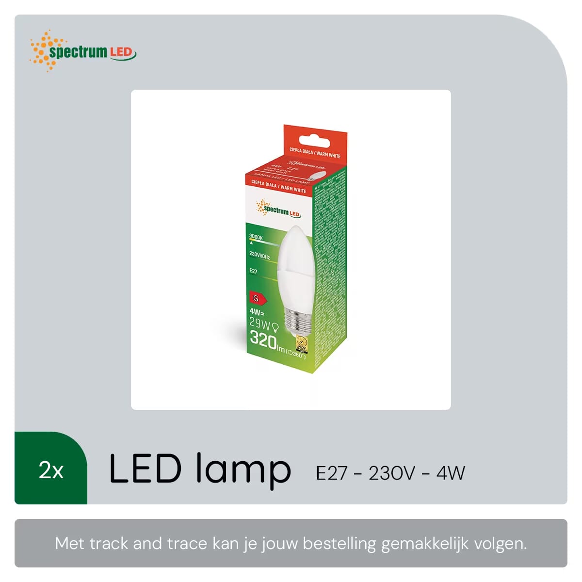 Spectrum LED Kaarslamp E27 4W – 230V – 320 Lumen – 3000K Warm wit – 2 stuks