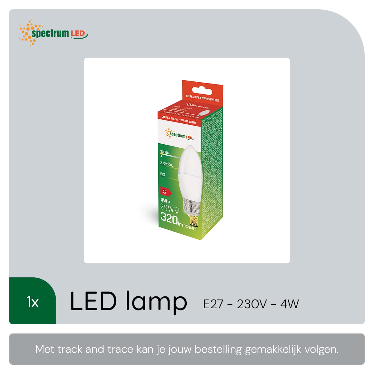 Spectrum LED Kaarslamp E27 4W – 230V – 320 Lumen – 3000K Warm wit