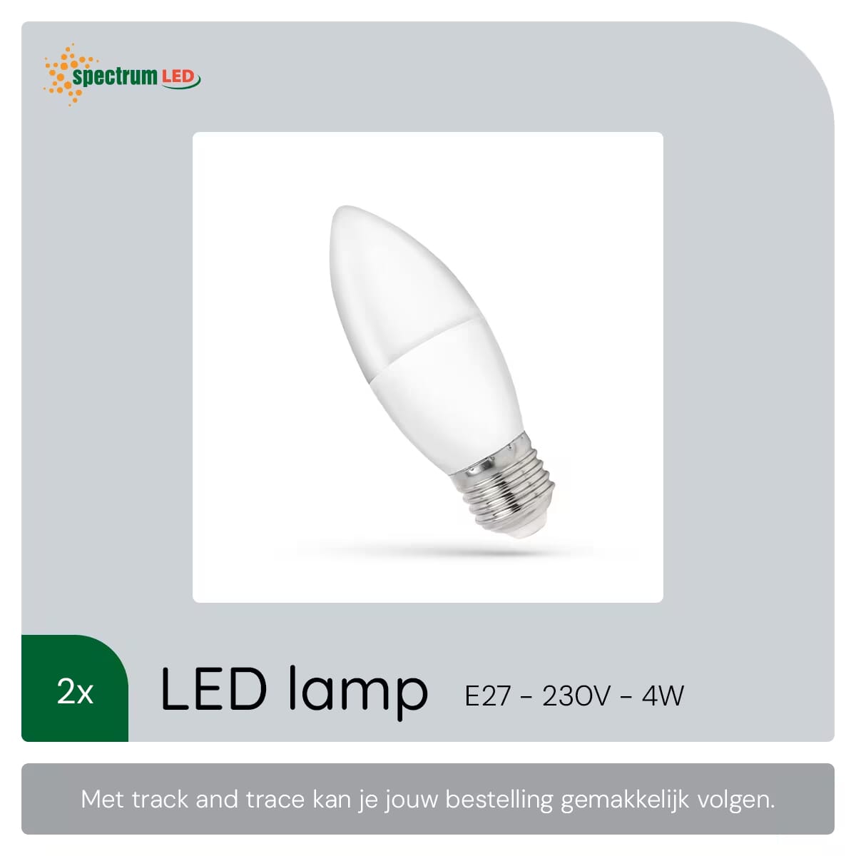 Spectrum LED Kaarslamp E27 4W – 230V – 340 Lumen – 6000K Koud wit – 2 stuks