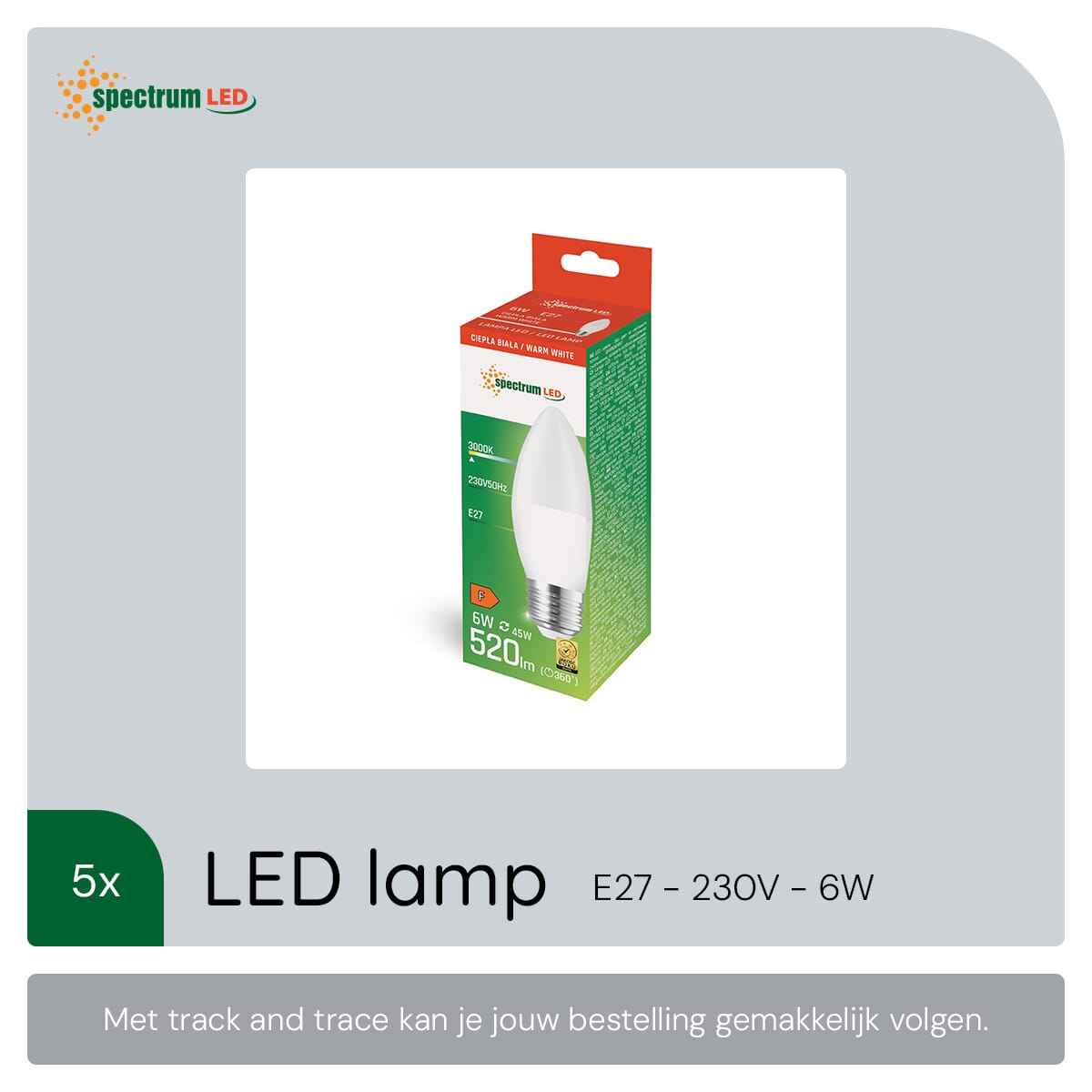 Spectrum LED Kaarslamp E27 6W – 230V – 520 Lumen – 3000K Warm wit