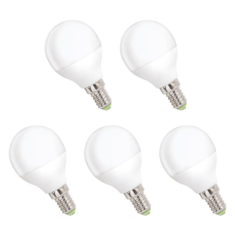 Verlicht je ruimte met de energiezuinige en compacte Spectrum LED Kogellamp E14 4W. Deze lamp biedt een helder en natuurlijk licht, perfect voor elke kamer in je huis. Met een set van vijf stuks ben je verzekerd van een consistente en efficiënte verlichting.