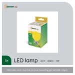 Spectrum LED Kogellamp E27 1W – 230V – Energiezuinig & Compact – Geel licht – 5 stuks