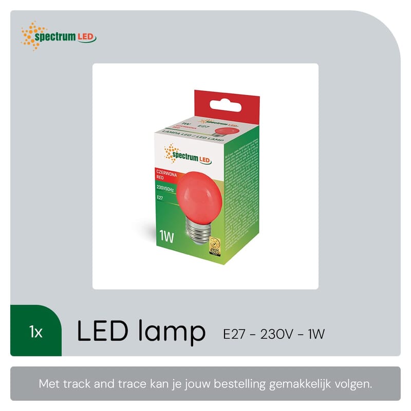 Spectrum LED Kogellamp E27 1W – 230V – Energiezuinig & Compact – Rood licht