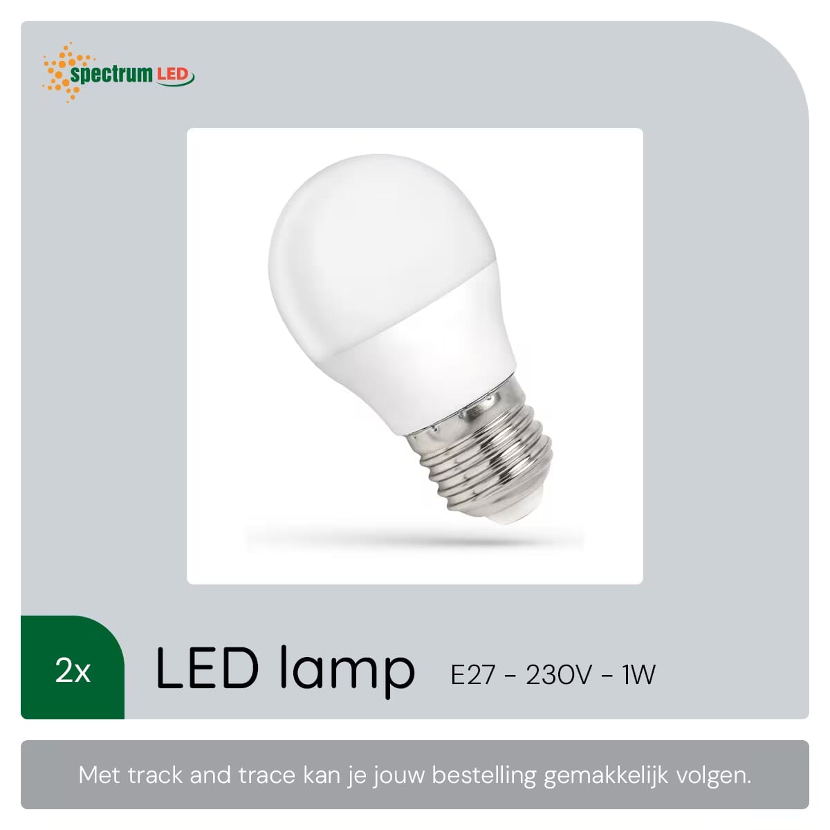 Spectrum LED Kogellamp E27 1W – Warm Wit Licht – 2 stuks