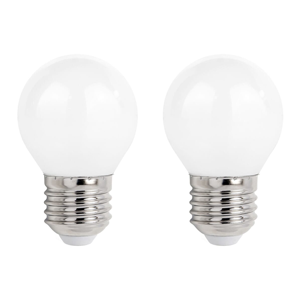 De Spectrum LED Kogellamp E27 is een energiezuinige lichtbron die geschikt is voor diverse toepassingen zoals tafellampen, nachtlampjes en wandlampen. Met een vermogen van 5.5W en een lichtopbrengst van 610 lumen, biedt deze lamp een warm wit licht van 2700K, wat zorgt voor een aangename en sfeervolle verlichting in huis. De lamp heeft een diameter van Ø45mm en wordt geleverd in een set van 2 stuks.