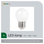 De Spectrum LED Kogellamp E27 is een energiezuinige lichtbron die geschikt is voor diverse toepassingen zoals tafellampen, nachtlampjes en wandlampen. Met een vermogen van 5.5W en een lichtopbrengst van 610 lumen, biedt deze lamp een warm wit licht van 2700K, wat zorgt voor een aangename en sfeervolle verlichting in elke ruimte. De lamp heeft een diameter van Ø45mm en wordt geleverd in een set van drie stuks.