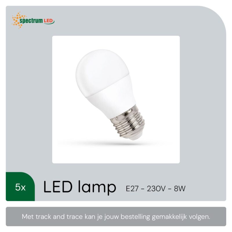 Spectrum LED Kogellamp E27 8W – 230V – 730 Lumen – 6000K Koud wit
