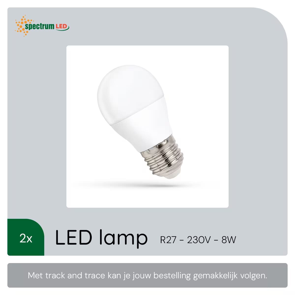 Spectrum LED Kogellamp E27 8W – 230V – 730 Lumen – 4000K Neutraal Wit – Natuurlijk Licht – Energiezuinig – 2 stuks