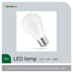 De lamp werkt op een spanning van 24V en is eenvoudig te installeren in elke E27 fitting. Dankzij de LED-technologie geniet je van een directe en volledige lichtopbrengst zonder opwarmtijd.