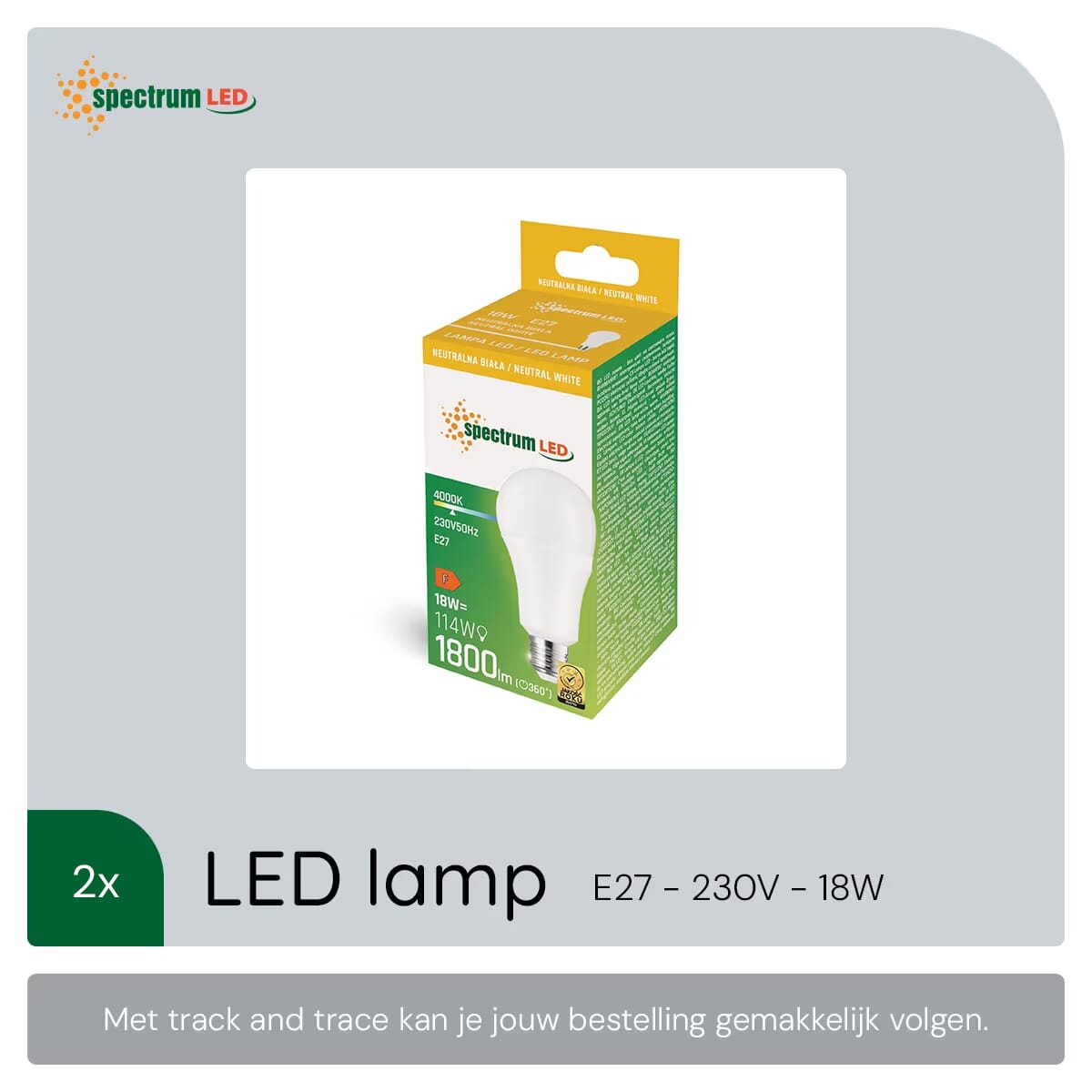 Spectrum LED Lamp E27 18W – Natuurlijk Licht – 2 stuks