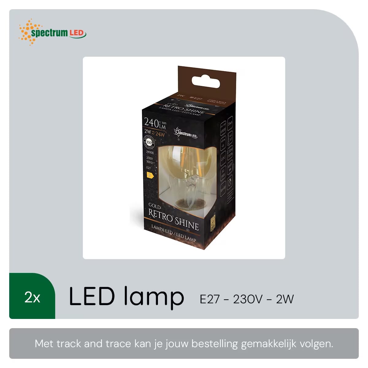 Spectrum LED Lamp E27 2W 230V – 240 Lumen – 2400K Warm wit – 2 stuks
