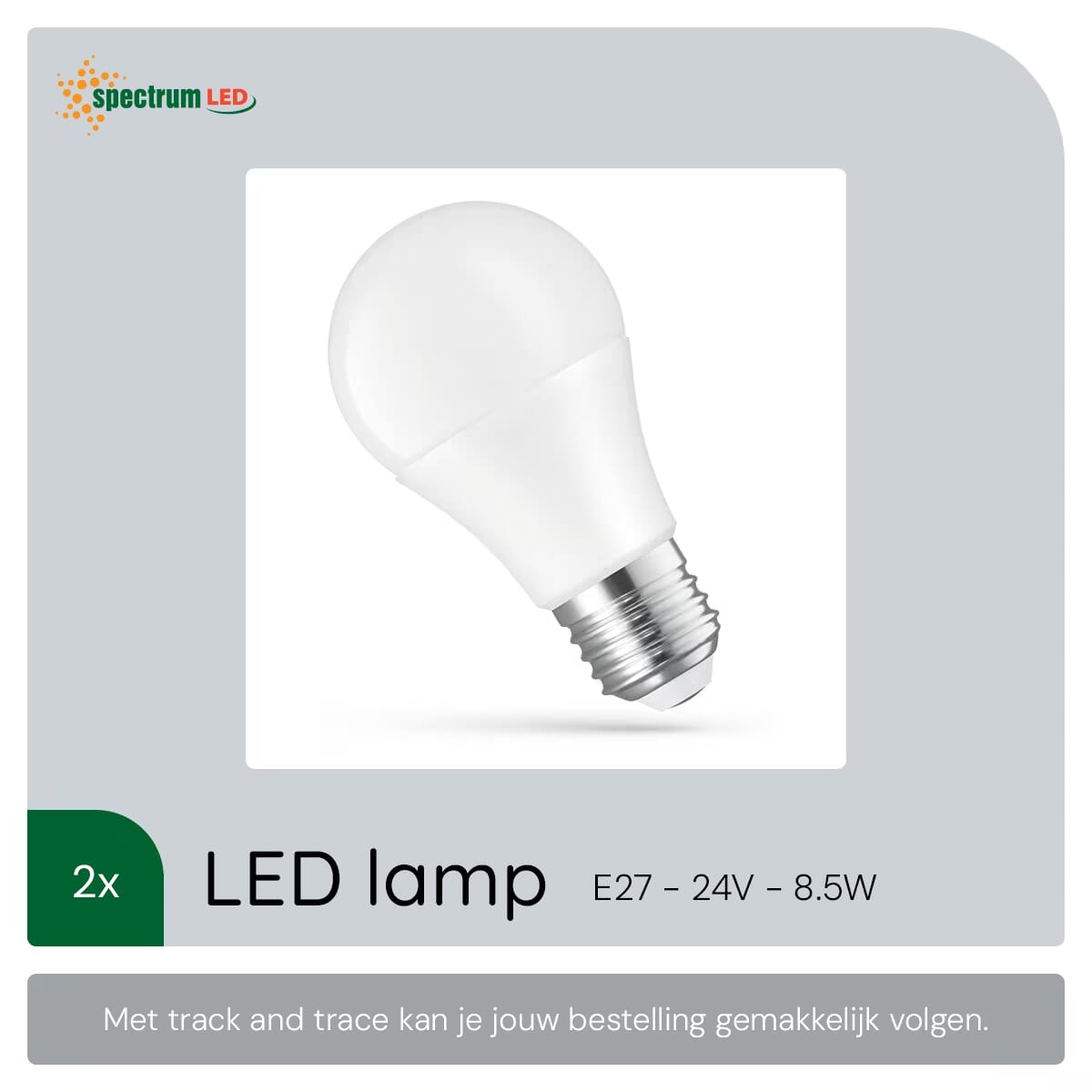 Spectrum LED Lamp E27 8.5W – 24V – 850 Lumen – 3000K Warm wit – 2 stuks