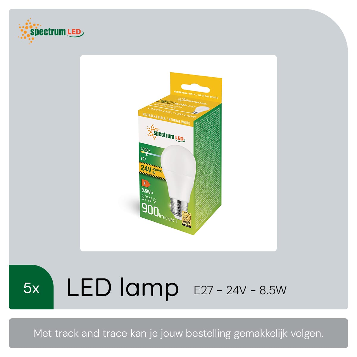 Spectrum LED Lamp E27 8.5W – 24V – 900 Lumen – 4000K Neutraal Wit