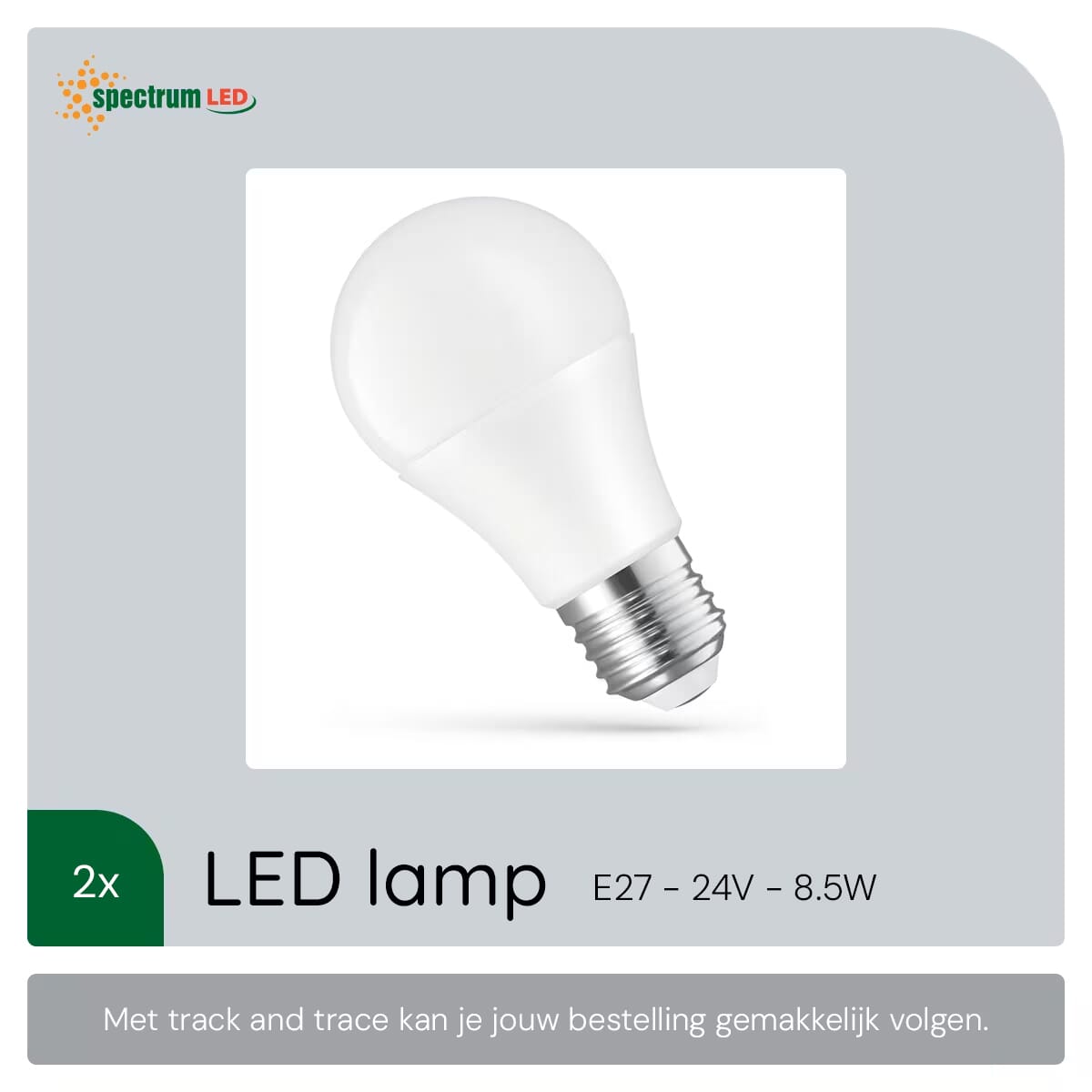 Spectrum LED Lamp E27 8.5W – 24V – 900 Lumen – 6000K Koud wit – 2 stuks
