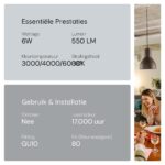 - Energiezuinig: Met slechts 6W verbruik bespaar je aanzienlijk op je energierekening zonder in te boeten op lichtkwaliteit.