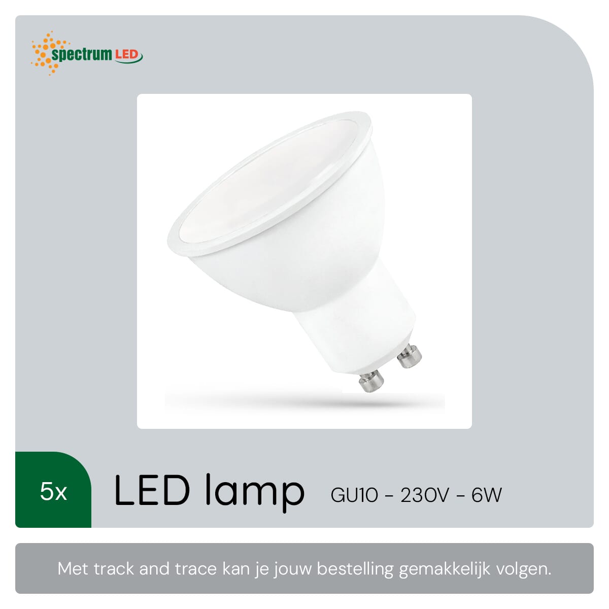 - Hoeveel lampen zitten er in een verpakking? Elke verpakking bevat 5 stuks van de Spectrum LED Lamp GU10.