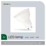 - Hoeveel lampen zitten er in een verpakking? Elke verpakking bevat vijf stuks Spectrum LED Lampen GU10.