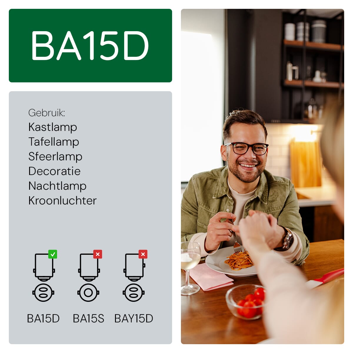 Dankzij het compacte ontwerp van de Ba15d fitting, is deze lamp perfect voor gebruik in kleine armaturen en moeilijk bereikbare plekken. Of het nu gaat om een leeslamp of een decoratieve toepassing, deze lamp past overal.
