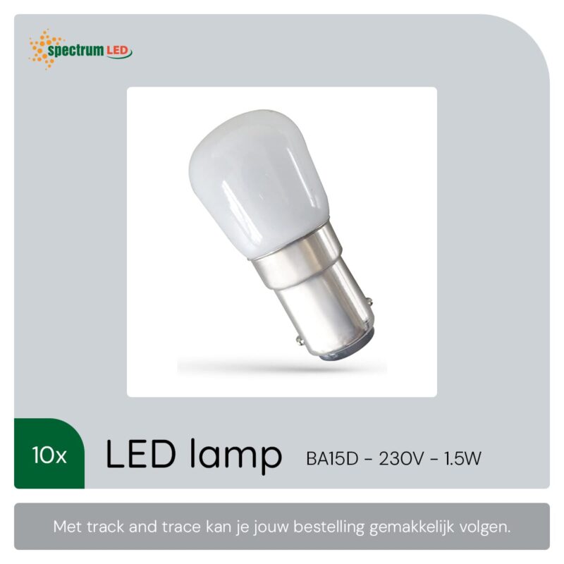 De Spectrum LED Miniatuur Lamp werkt op 230V en is eenvoudig te installeren in elke Ba15d fitting. Draai de lamp in de fitting en geniet direct van helder en energiezuinig licht.