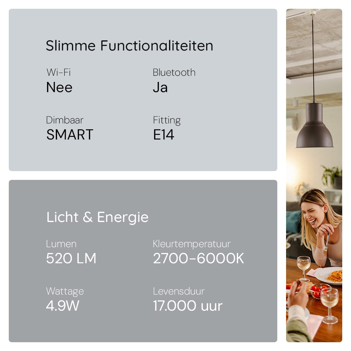 De installatie is eenvoudig: schroef de lamp in een E14 fitting, download de app, en verbind via Bluetooth. Binnen enkele minuten heb je volledige controle over je verlichting, zonder gedoe met extra hubs of ingewikkelde installaties.