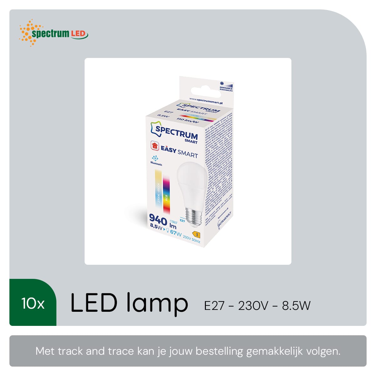 - Energiezuinig: Met slechts 8.5W verbruik bespaar je op je energierekening zonder in te boeten op helderheid.