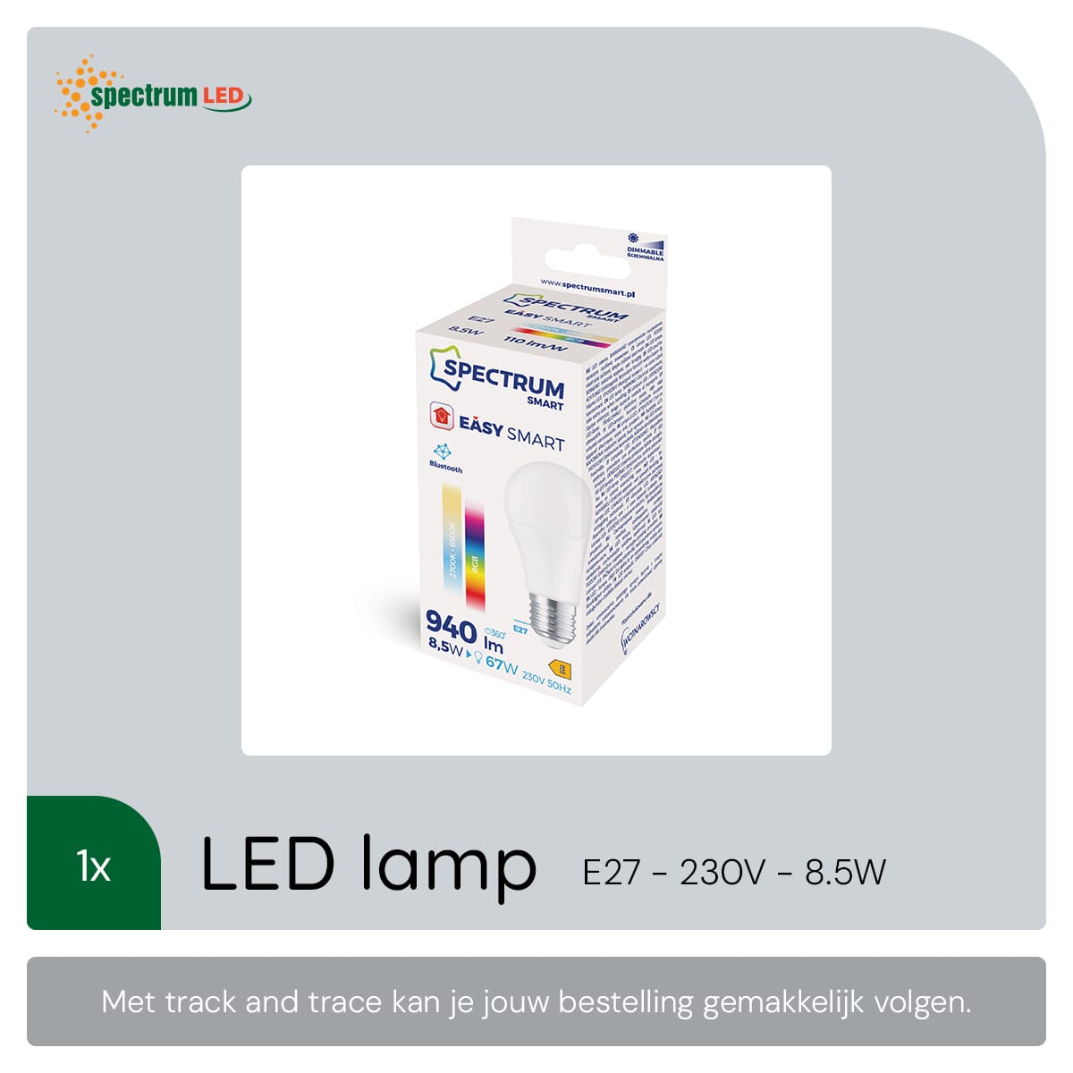 Met een verbruik van slechts 8.5W biedt de Spectrum Smart LED Lamp een energiezuinige oplossing die je helpt om je ecologische voetafdruk te verkleinen en tegelijkertijd te besparen op je energiekosten.
