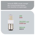 Met een verbruik van slechts 2W is deze LED lamp extreem energie-efficiënt. Je kunt genieten van helder en aangenaam licht terwijl je tegelijkertijd je energiekosten verlaagt. Bovendien gaat de SPL Ba15d LED Lamp veel langer mee dan traditionele lampen, wat bijdraagt aan een duurzamere levensstijl.