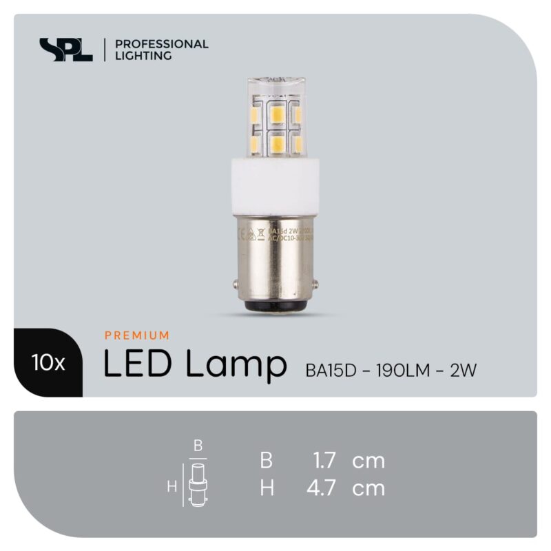 SPL Ba15d LED Lamp 2W Warm Wit 190lm LED Buislamp T17 10 Stuks Premium Lamp 3000K 10-330 Volt