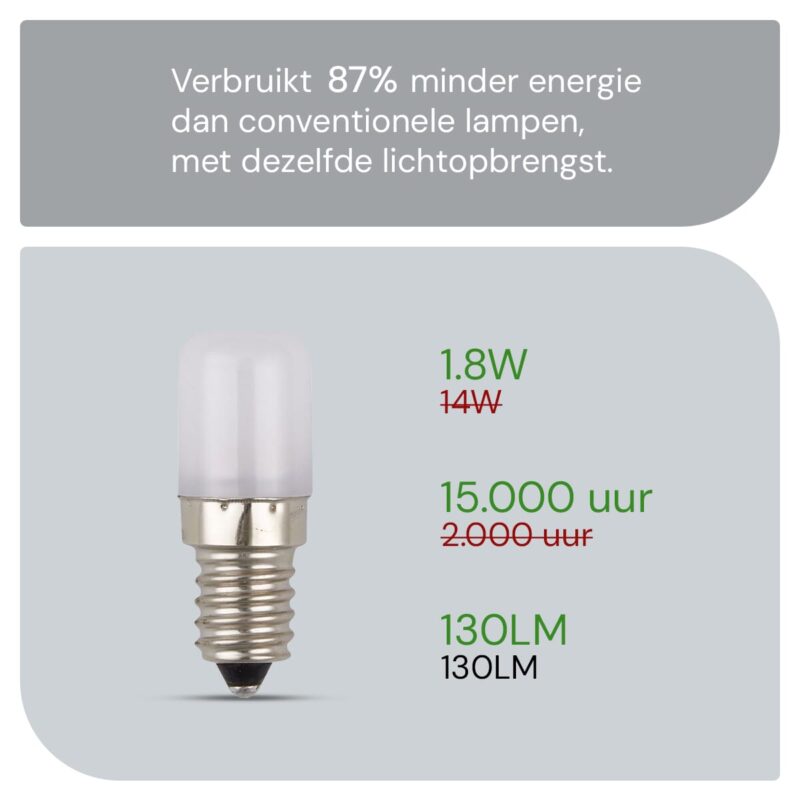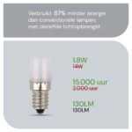 - Energiezuinig: Met een verbruik van slechts 1.8W is deze LED lamp een uitstekende vervanger voor de traditionele 14W halogeen gloeilamp.