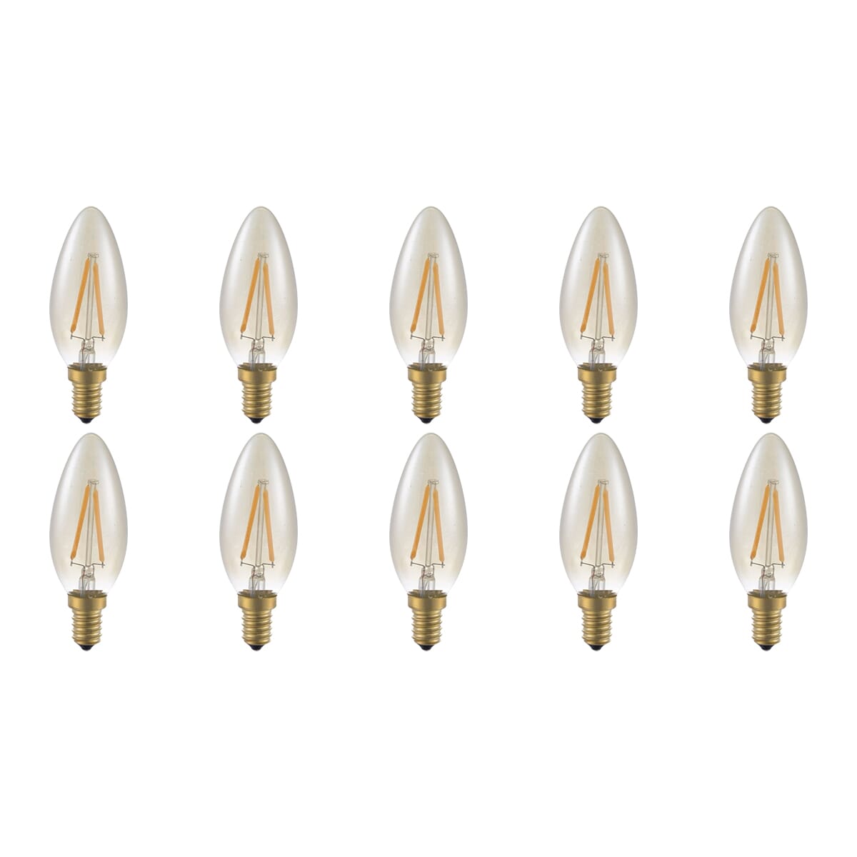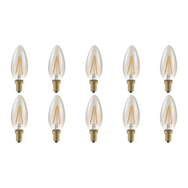 SPL E14 LED Lamp 2W Dimbaar – Goud – Extra Warm Wit – 2200K – LED Filament Kaars C35 – 10 Stuks