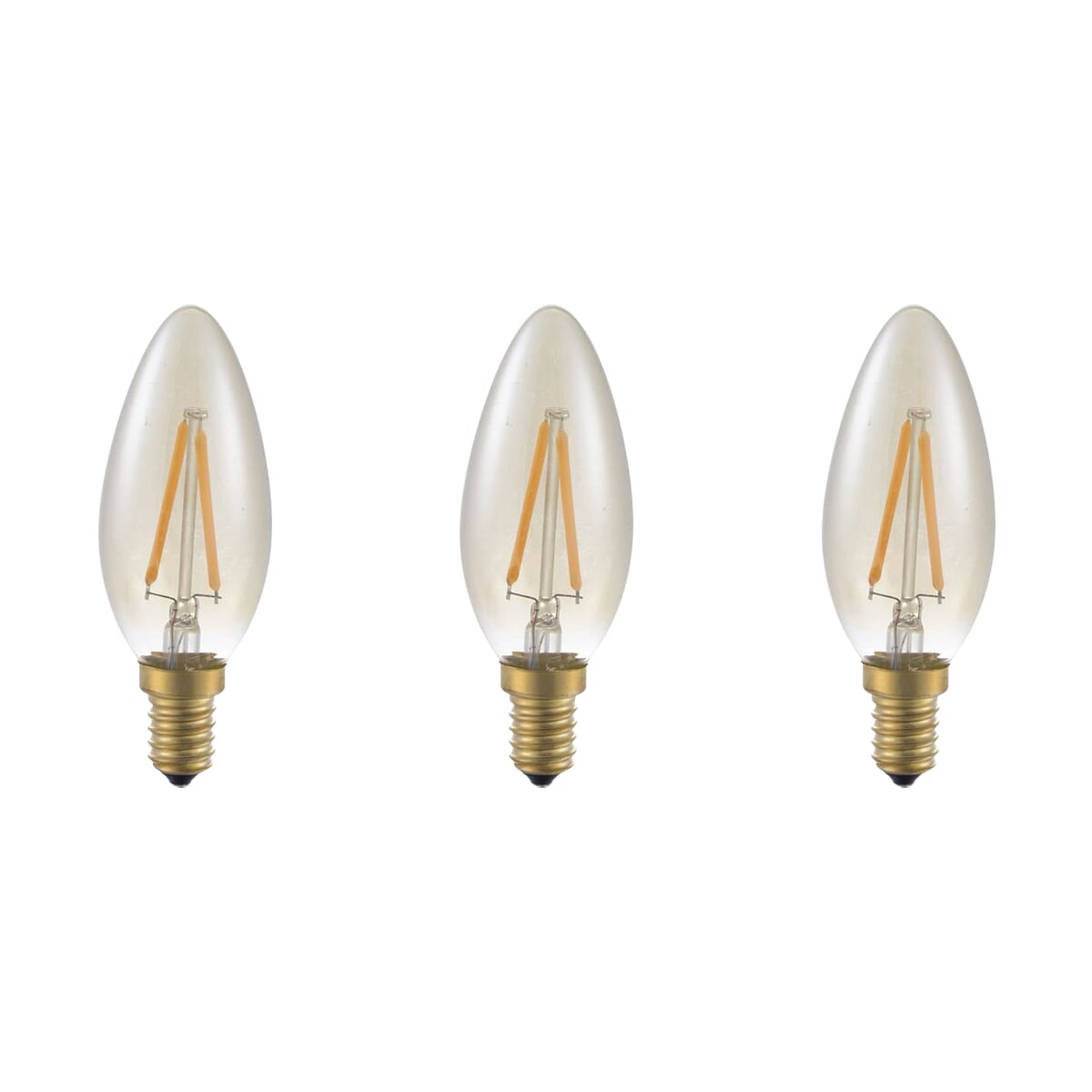 SPL E14 LED Lamp 2W Dimbaar – Goud – Extra Warm Wit – 2200K – LED Filament Kaars C35 – 3 Stuks
