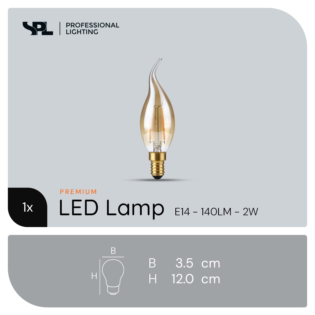 Premium SPL E14 LED Lamp 2W Dimbaar – Goud – Extra Warm Wit