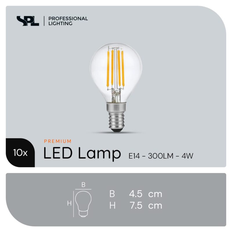 SPL E14 LED Lamp 4W Dimbaar – Extra Warm Wit – Premium LED Filament Globe G45 – 10 Stuks