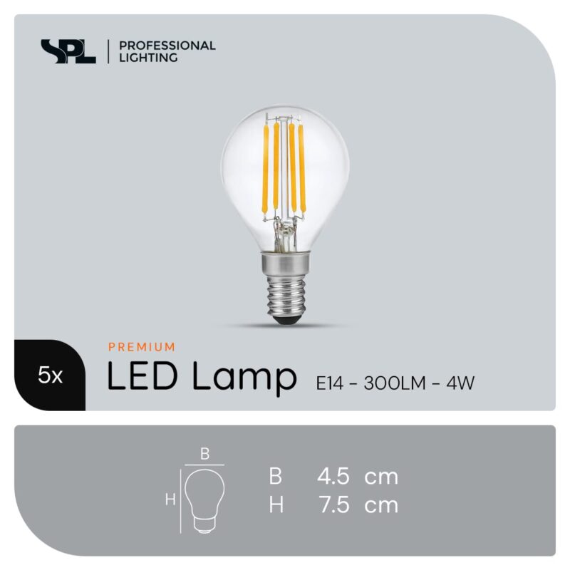SPL E14 LED Lamp 4W Dimbaar – Extra Warm Wit – Premium LED Filament Globe G45 – 5 Stuks