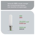 De compacte T18 vorm van deze LED lamp maakt hem geschikt voor verschillende armaturen en toepassingen. Of je nu je woonkamer, keuken of kantoor wilt verlichten, deze lamp biedt de flexibiliteit die je nodig hebt. Het opaalglas zorgt bovendien voor een zachte en gelijkmatige lichtverdeling.