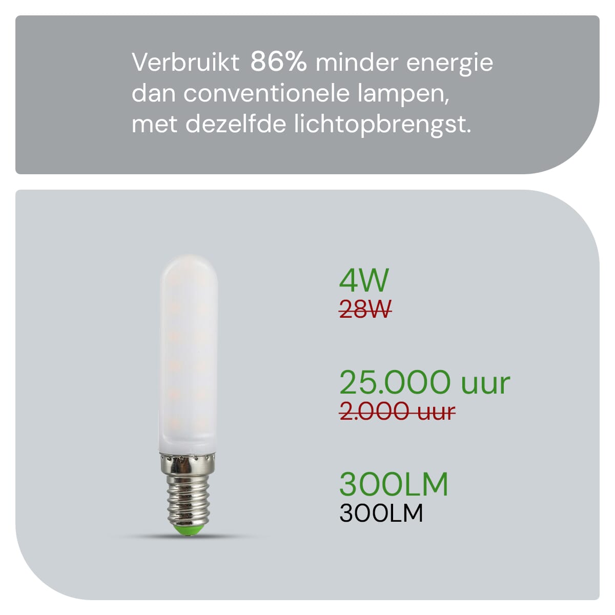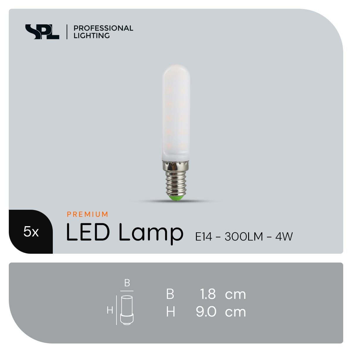 SPL E14 LED Lamp 4W Neutraal Wit 3000K LED Buislamp T18 Opaal 5 Stuks 300 Lumen 230 Volt