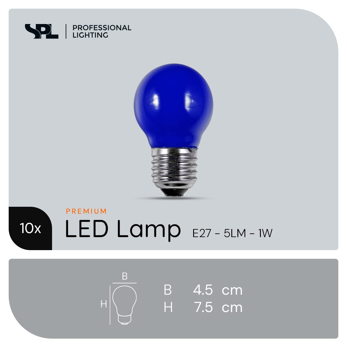 SPL E27 LED Lamp 1W Blauw LED Filament Mini Globe Kogel G45 – 10 Stuks