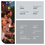 Met de SPL E27 LED Lamp creëer je eenvoudig een unieke sfeer in elke ruimte. De warme gele kleur zorgt voor een gezellige en ontspannen ambiance, ideaal voor zowel binnen- als buitengebruik. Of je nu een feestje organiseert of gewoon een rustige avond thuis doorbrengt, deze lamp voegt een vleugje charme toe aan elke gelegenheid.