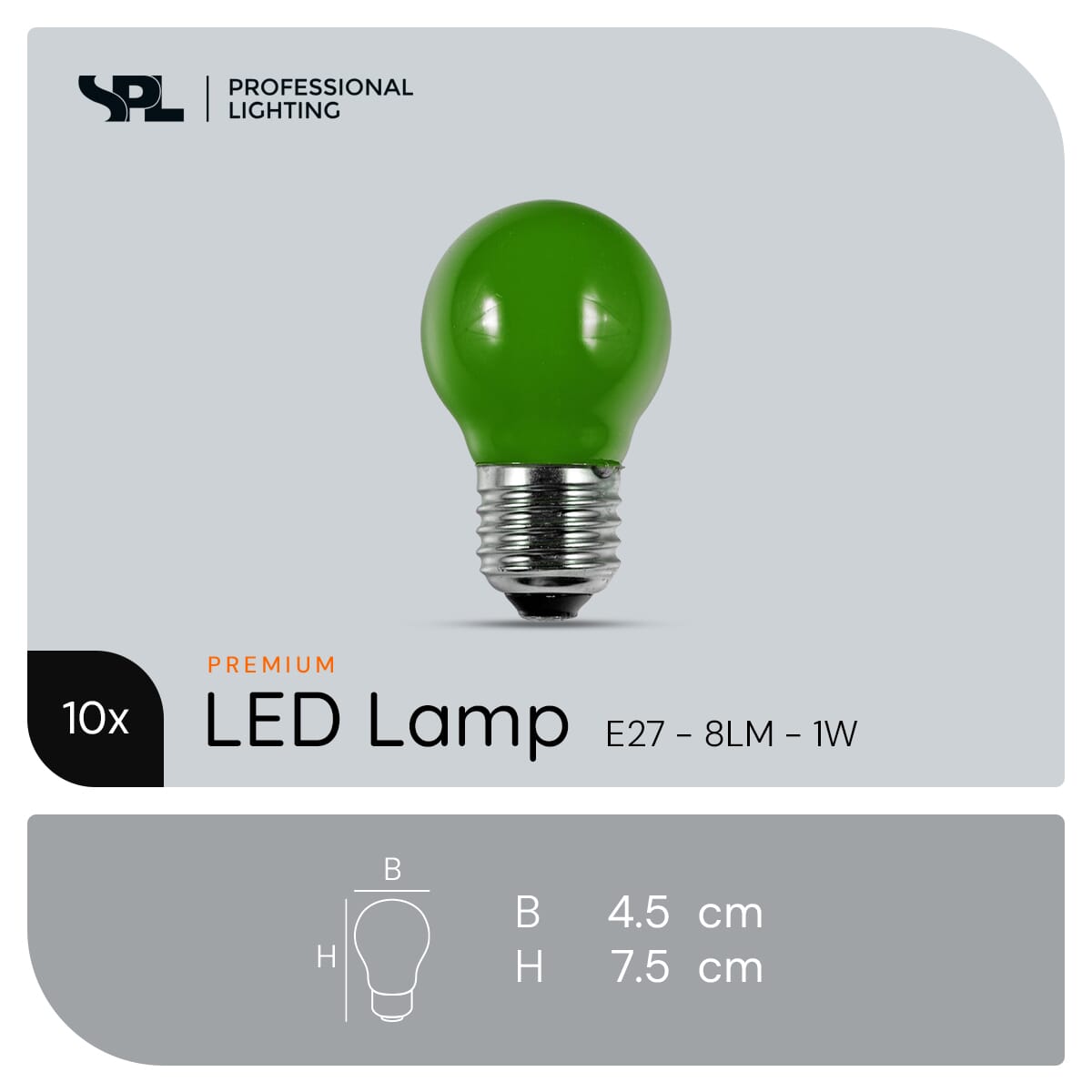 SPL E27 LED Lamp 1W Groen – LED Filament Mini Globe – 10 Stuks