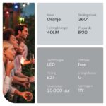 Breng kleur en sfeer in je huis met de SPL E27 LED Lamp 1W in oranje. Deze LED Filament Mini Globe is niet zomaar een lamp, maar een sfeermaker die elk interieur een warme, uitnodigende uitstraling geeft. De opvallende oranje kleur zorgt voor een unieke en levendige ambiance, perfect voor feestjes, gezellige avonden of gewoon om je dagelijkse omgeving op te fleuren.