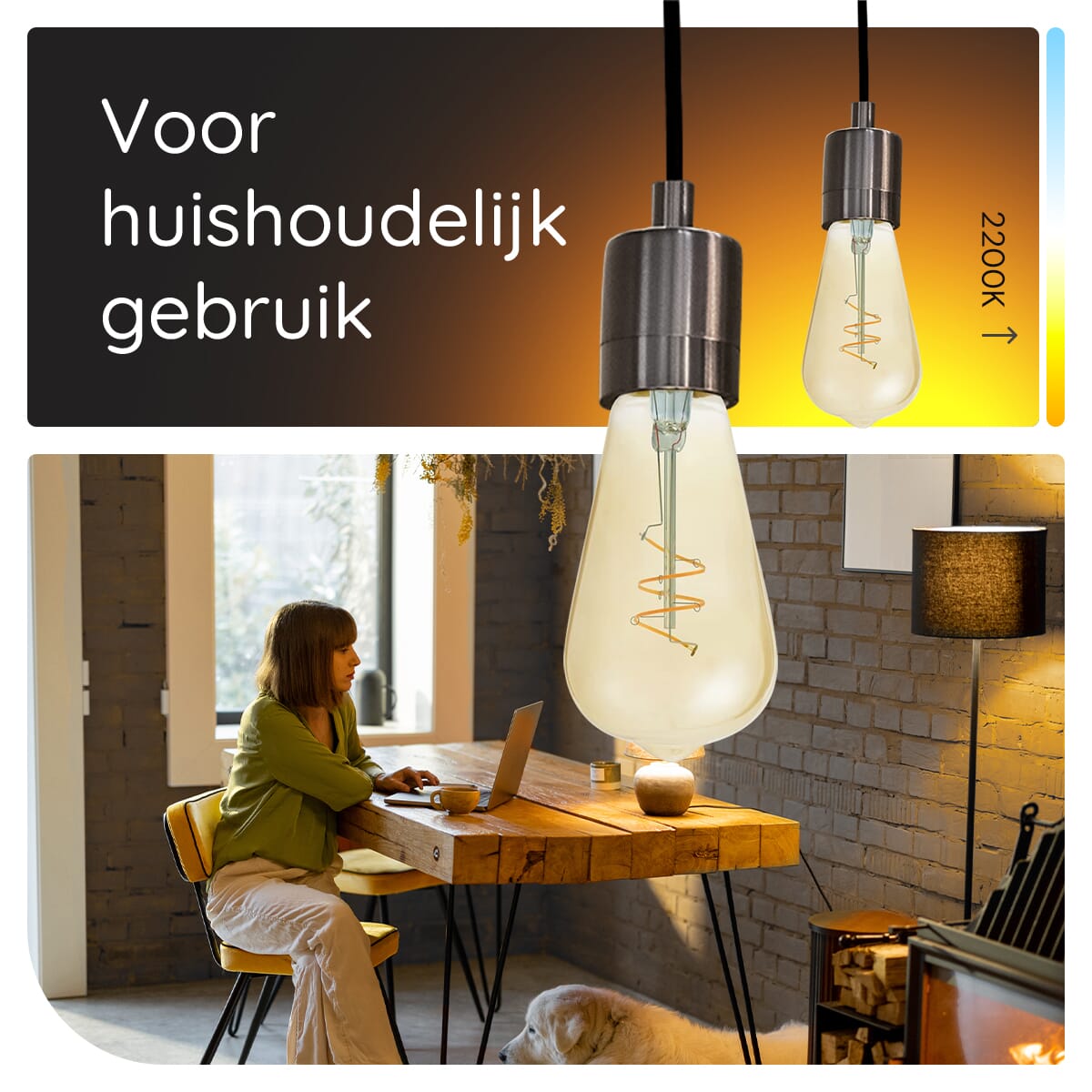 - Stijlvol en efficiënt: Het unieke LED Filament ST64 design in amber zorgt voor een decoratieve touch, terwijl het meer lumen biedt dan de gemiddelde marktstandaard.