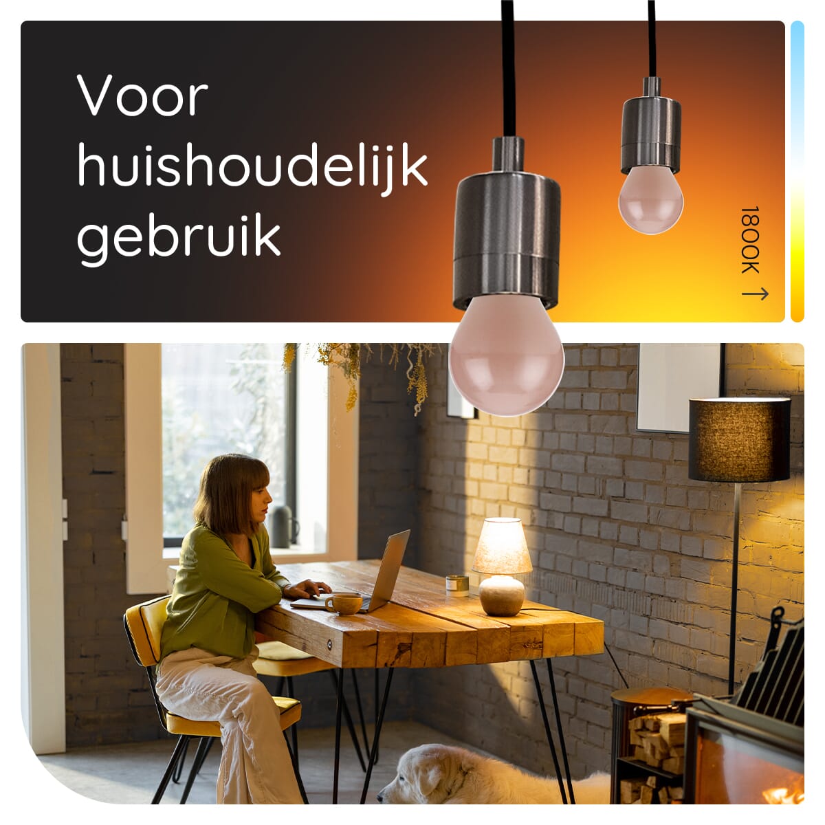 - Kleurtemperatuur: 1800K (extra warm wit)