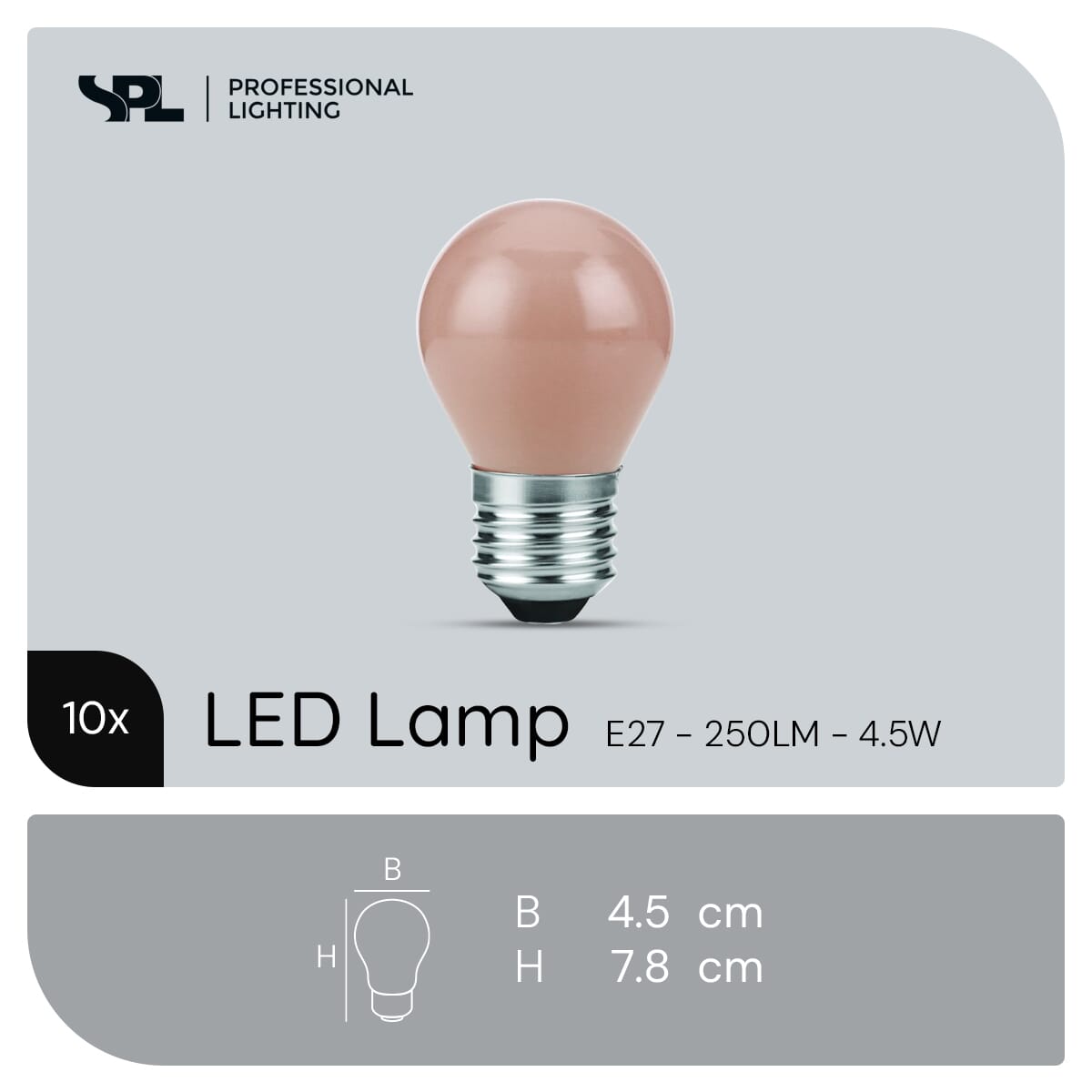 SPL E27 LED Lamp 4.5W Dimbaar – Extra Warm Wit – LED Filament G45 Flame – 10 Stuks