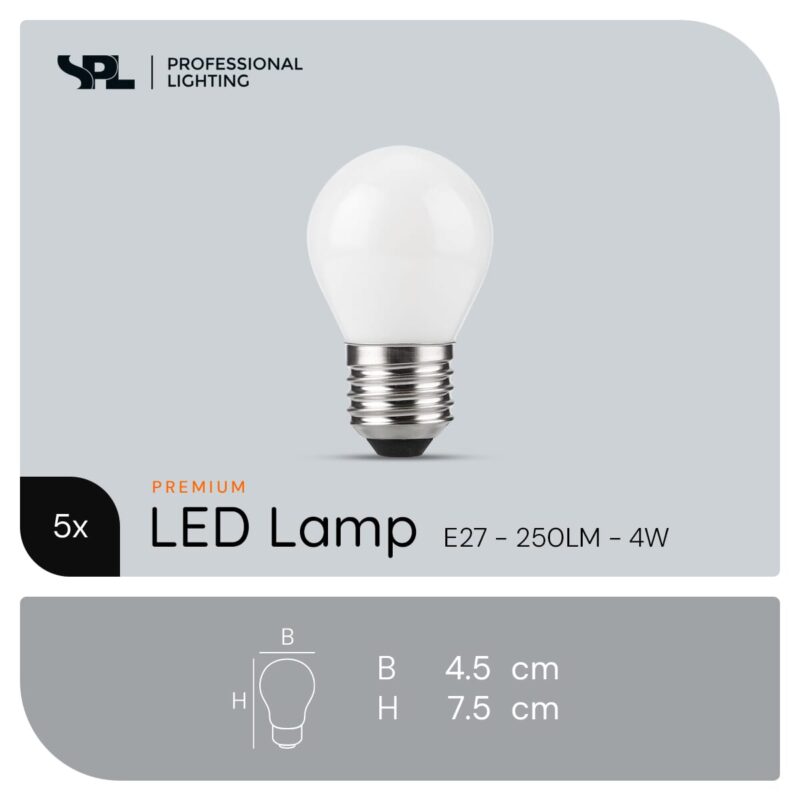 SPL E27 LED Lamp 4W Dimbaar met Hoge CRI – 5 Stuks