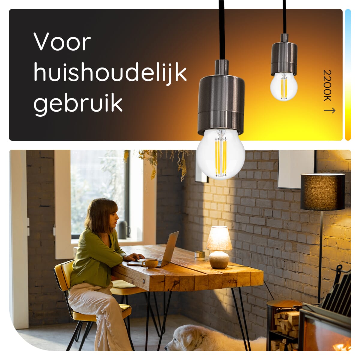 - Kleurtemperatuur: Extra Warm Wit (2200K)