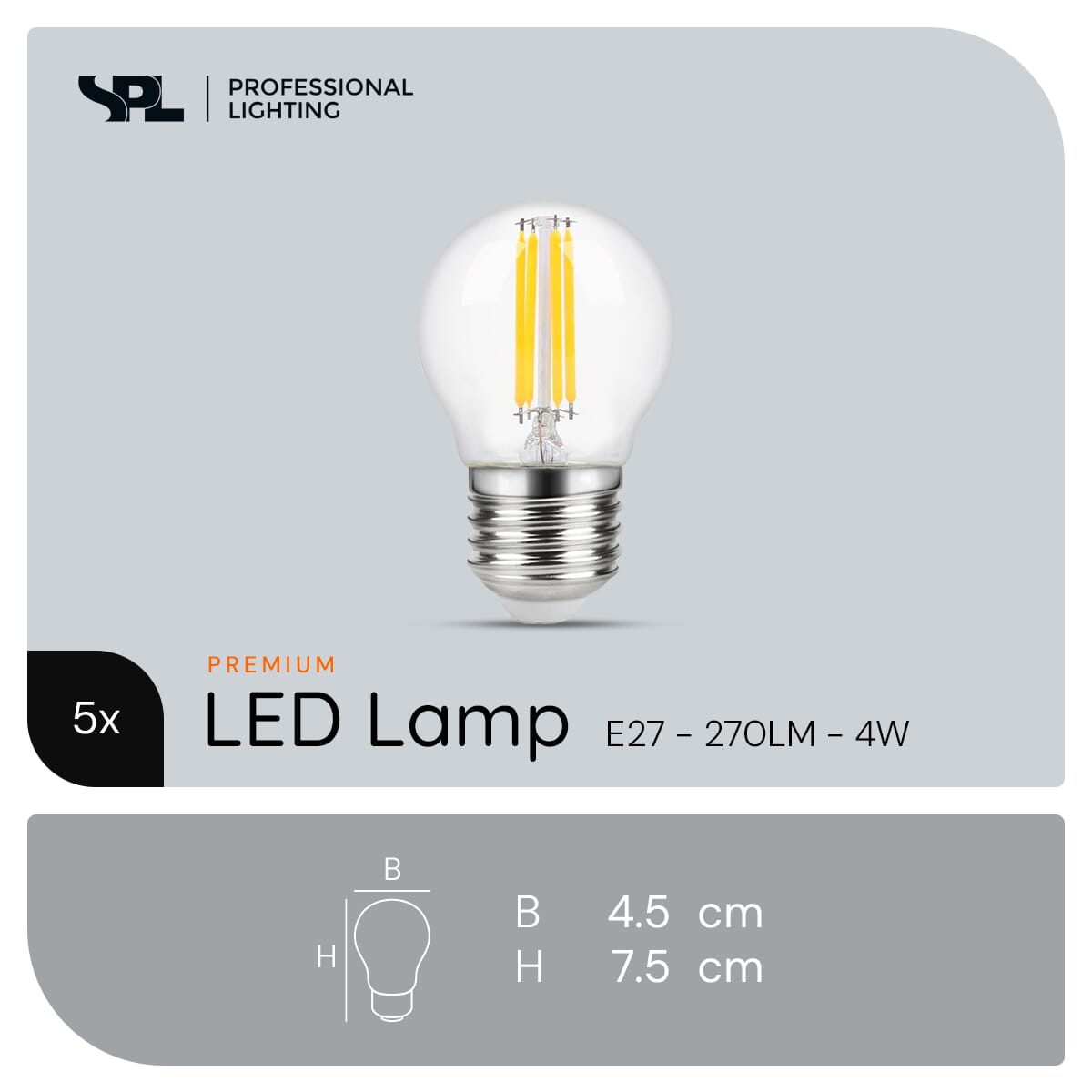 Premium SPL E27 LED Lamp 4W Dimbaar met Extra Warm Wit Licht – 5 Stuks
