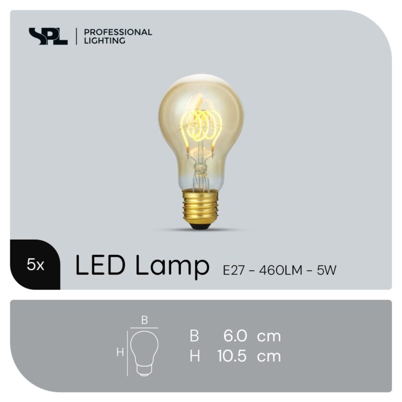 SPL E27 LED Lamp 5W Dimbaar – Goud – Extra Warm Wit – 5 Stuks