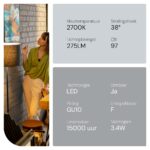 - Energiezuinig: Met slechts 3.4W verbruik vervangt deze lamp moeiteloos een traditionele 25W halogeenlamp, wat resulteert in aanzienlijke energiebesparingen.