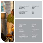 De warme witte kleurtemperatuur van 2700K zorgt voor een comfortabele en uitnodigende sfeer in je huis. Of je nu een gezellig diner organiseert of een ontspannen avond op de bank doorbrengt, deze LED lamp creëert de perfecte ambiance.