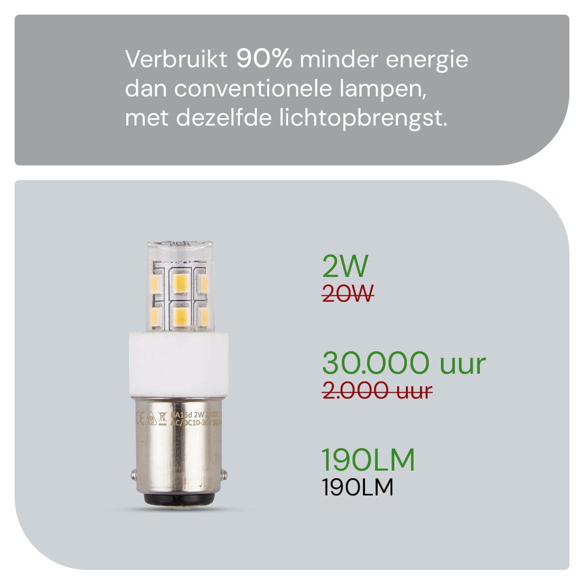 SPL LED Buislamp Ba15d 2W 3000K 190lm 10-30V – Helder – Warm Wit